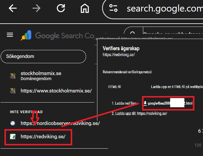 gle Search Console tillhandahåller, med namnet som börjar på ”google-site-verification: google4…”.